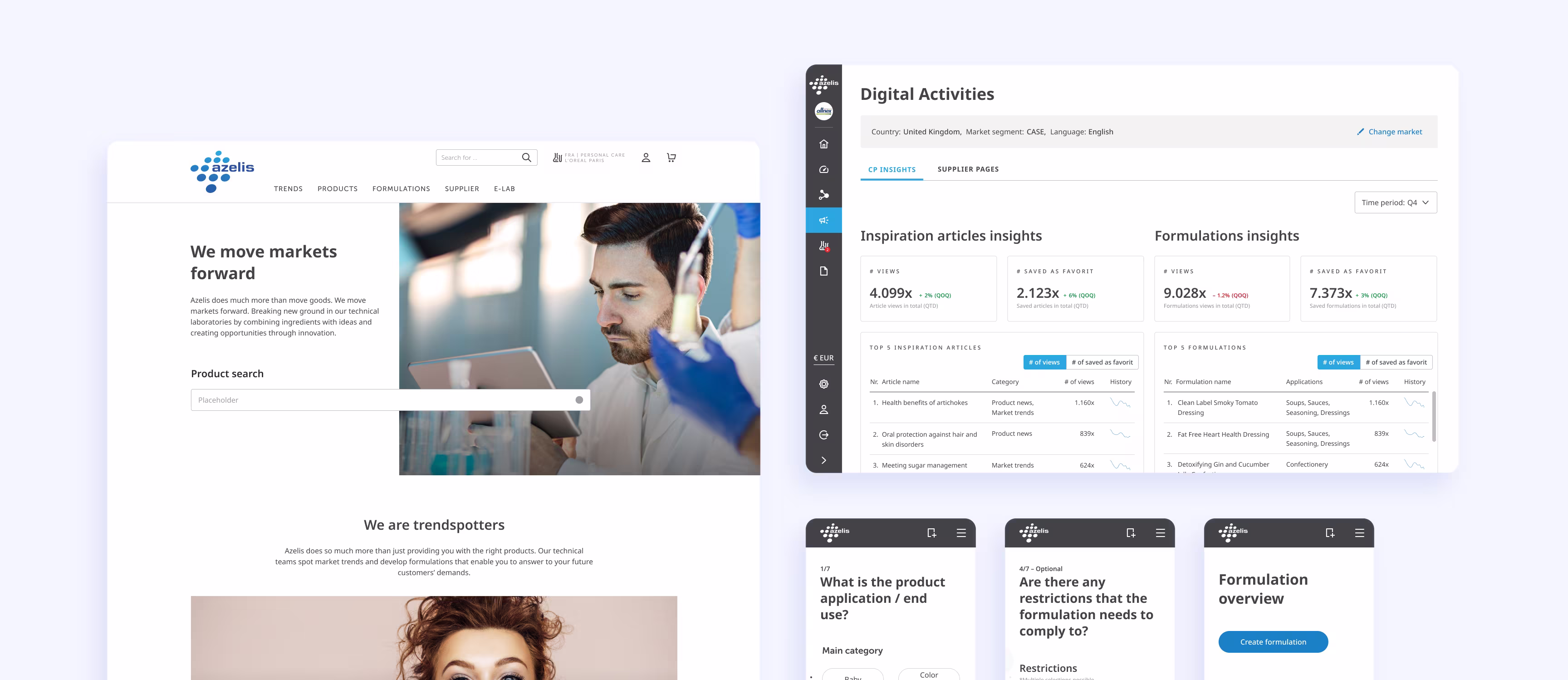 The Azelis Customer Portal is a connected experience that inspires users with trends and inspirational content for selected markets, linking users to formulations, products, and related documentation.