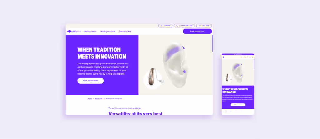 Introduction of a scalable MVP, empowering consumers to take control of their hearing health. The retail customer portal offers a user-friendly interface with structured content, engaging consumers at every stage of their journey. With a mobile-first and age-friendly design, the portal ensures a seamless browsing experience. To maximize revenue growth and increase appointments, we implemented an SEO-driven content strategy that drives organic traffic to the portal.
